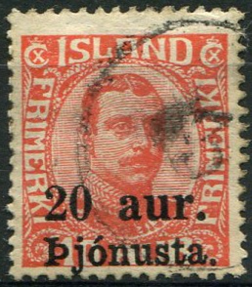 Numeral cancel 3, Fellsmúli, 1903-1930 on Facittj55, Chr X. Overprintet 20 aur Þjónusta on 10aur. Surcharge.