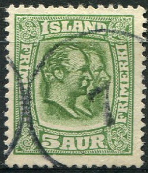 Numeral cancel 7, Reykir, 1903-1930 on Facit94, DBL King 5aur.